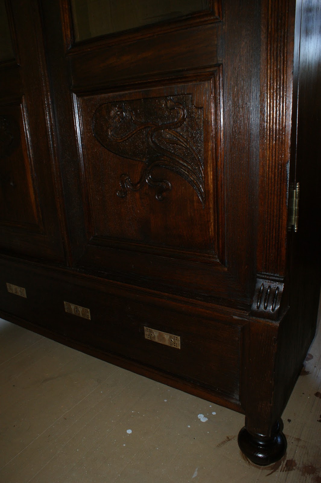 Po złożeniu całość zrobiła niesamowite wrażenie. W takich momentach wiem, że ten wysiłek ma sens. Pierwszy mebel w nowej pracowni ("Bursztynowej komnacie"). Można powiedzieć że komnata zaczęła wypełniać się skarbami.